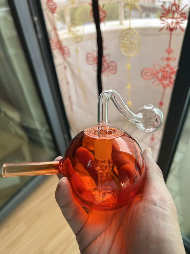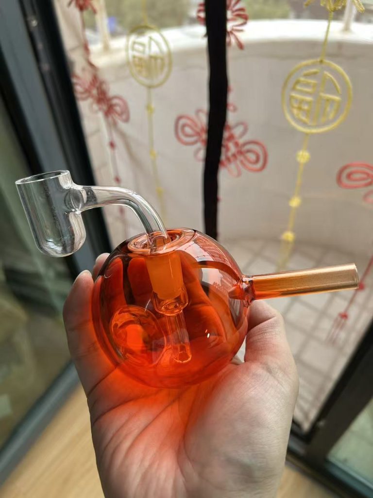 Firstly lets see it is a red protable globe glass bong, 80mm diameter for the ball size, it is 14mm female joint size so it can work with any 14mm male flower bowl, banger or oil bowl.